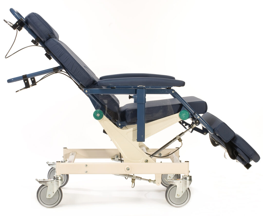 The H-250 features Tilt-in-Space capability that allows for unlimited repositioning. Patient transfer and repositioning are key to early mobilization and increased blood circulation to prevent complications associated with compromised mobility. The H-250 chair can be equipped with a Patient Transfer System (PTS) to offer transfers between a bed and a chair with ease by a single caregiver without risk of injury to the patient or caregiver. The H-250 can also be used with other traditional SPH transfer techniques like slide sheets or air-assisted devices.